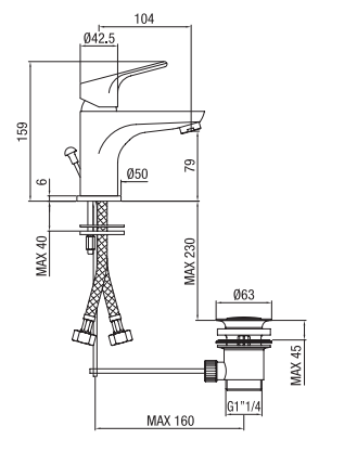 Monocomando lavabo medio con scarico automatico - Serie Topic
